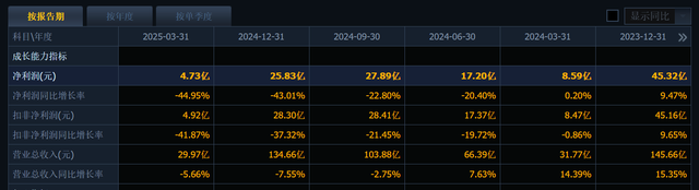 而几年之后,长春高新的核心业务也的确出现了下滑,例如金赛药业2024年净利润同比暴跌40.67%,2025年一季度续降38%等等!